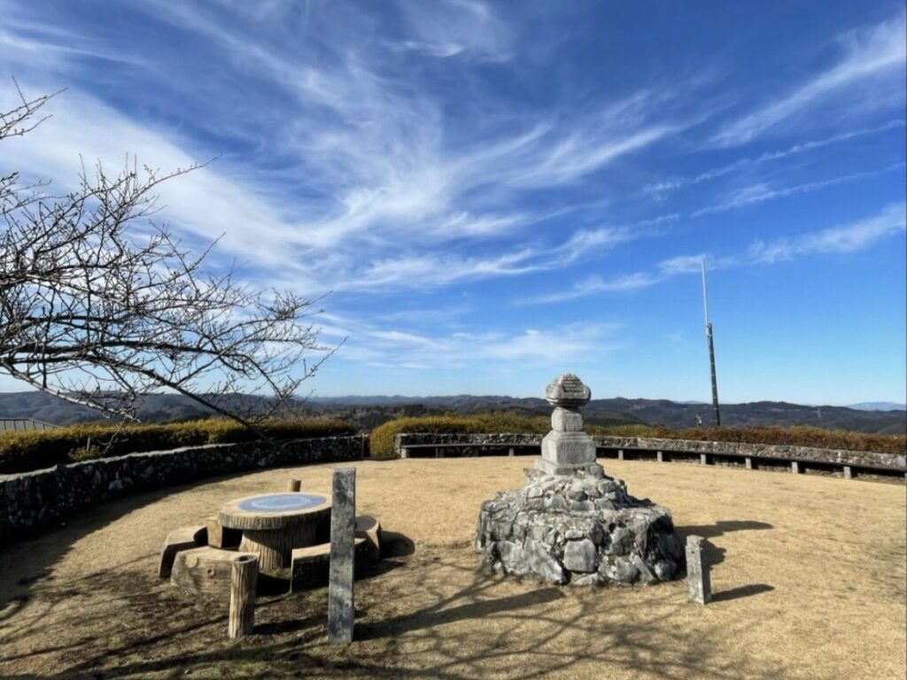 弥高山公園内でも特におすすめなスポットは、弥高山山頂からの眺望!登山口から緩やかな山道を約20分ほどのんびり登り山頂に着くと、遮るものが何もない360度パノラマの風景が一気に広がります。吉備高原の山並み、北には大山(伯耆富士)、南には瀬戸の島々や四国の山並み。広大な山々を眼下に、まるで空の真ん中に放り出されたような、空を飛んでいるような感覚に。