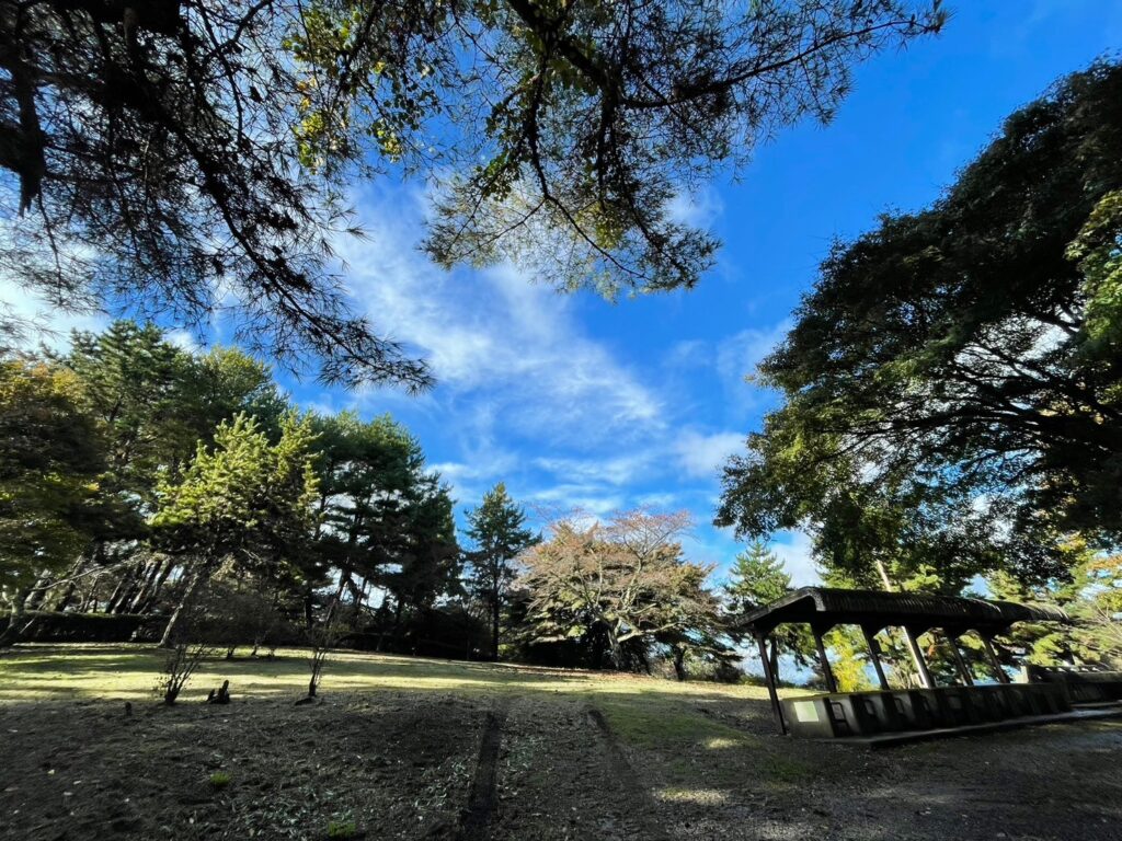弥高山公園には、5区画にわたる広いキャンプ場がある。